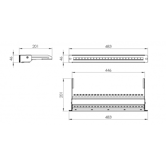 19" modulární stíněný patch panel LEXI-Net 24port, černý, výsuvný