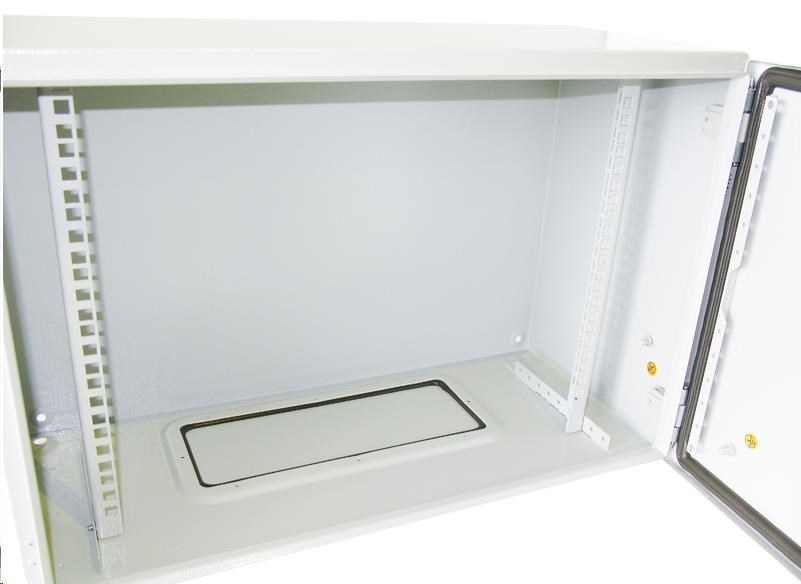 Venkovní nástěnný rozvaděč vyrobený z válcované oceli o tloušťce 1,5 mm.Třívrstvá povrchová úprava. Provedení: dveře - plné, otevíratelné o 110°, zaměnitelný směr otevírání, těsnění z pěnového polyuretanu zádní kryt - plný boční kryt - plný horní kryt - plný