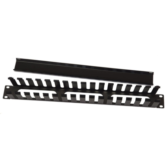 19" vyvazovací panel 1U, celokovový s krytem 40x70mm, průchozí, černý