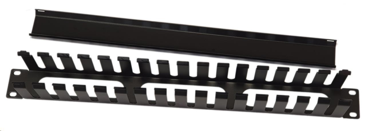 19" vyvazovací panel 1U, celokovový s krytem 40x70mm, průchozí, černý