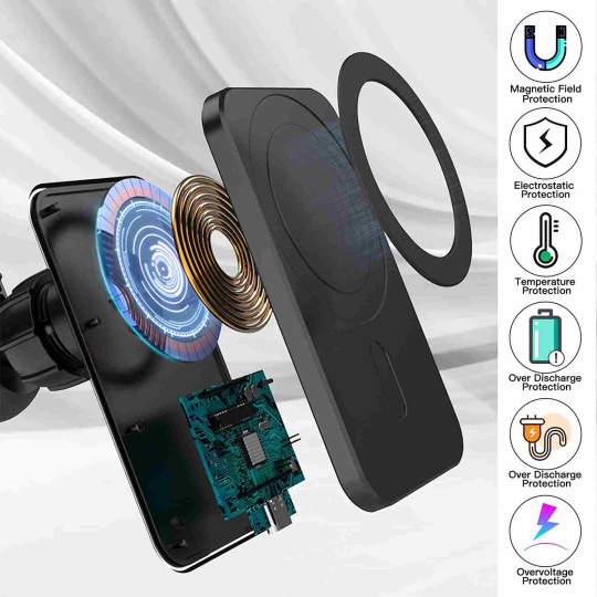 Díky podpoře Qi standardu bezdrátového nabíjení umožnuje dobíjet mobilní zařízení výkonem 5W, 7.5W, 10W a 15W, dle potřeby dobíjeného zařízení a to zcela bez kabelů.