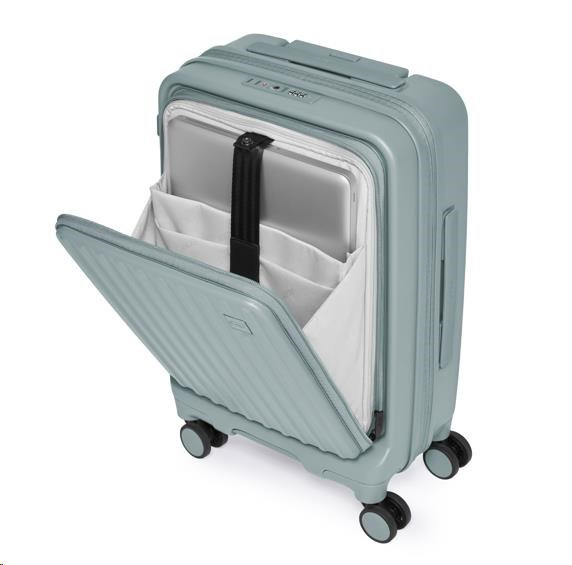 Inovativní vpředu otevíraná konstrukce poskytuje rychlý přístup k notebooku, dokumentům a mobilním zařízením, když zavazadlo stojí ve vzpřímené poloze, a šetří tak místo i čas. Za dělícím panelem na zip se nachází dostatečný úložný prostor s utahovacím popruhem, který udrží vaše věci v bezpečí a nabízí flexibilní kapacitu pro každou cestu. Velikost 20'' je ideální pro cenově výhodná příruční zavazadla leteckých společností.