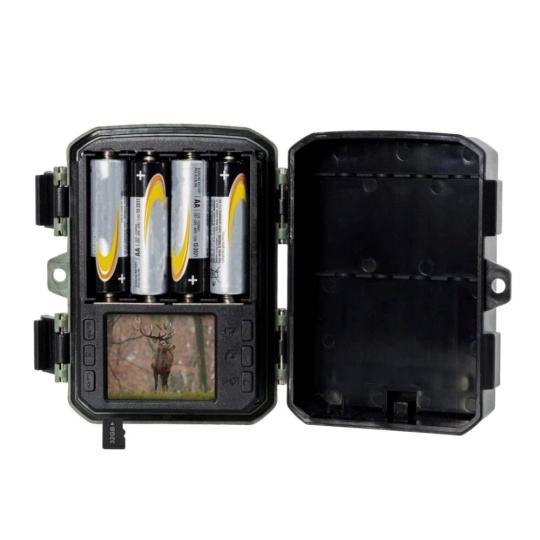Zařízení lze napájet 4 AA bateriemi, které zajišťují dlouhou výdrž až 4 měsíce v pohotovostním režimu. Pro stacionární použití je zde možnost napájení pomocí externího 6V zdroje s běžným kulatým konektorem. Díky inteligentnímu řízení spotřeby se kamera aktivuje pouze při detekci pohybu, čímž šetří energii a prodlužuje dobu provozu. Výhodou je snadná výměna baterií díky přístupnému vnitřnímu prostoru se silným těsněním proti vlhkosti. Pro použití v odlehlých oblastech můžete připojit i solární panel nebo externí akumulátor, což je ideální pro trvalý monitoring bez nutnosti častých zásahů. Úsporný provoz dělá z tohoto zařízení spolehlivého partnera pro dlouhodobé sledování bez nutnosti neustálého dohledu. Fotopast tak funguje samostatně a bezúdržbově, ať ji umístíte kamkoli – do lesa, na pole nebo k chatě.