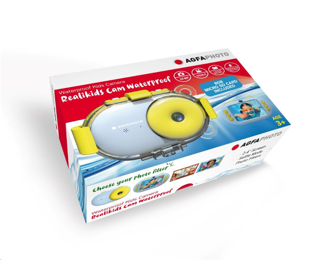 Díky pouzdru, které je vodotěsné do 10 metrů, může Realikids Cam Waterproof doprovázet vaše děti na všech jejich suchozemských i podmořských dobrodružstvích. Je vybaven 2,4" LCD obrazovkou pro úspěšné zarámování fotografií/videí a jejich pohodlné prohlížení po pořízení. S 8GB micro SD kartou a lithiovou baterií (součástí balení) je tato kamera připravena k použití. Jeho robustní a ergonomický design zaručuje snadné použití pro malé ruce a potěší každého malého fotografa.