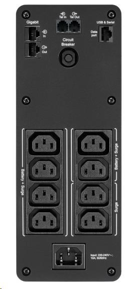 | Typ zásuvek | (6) IEC 320 C13 (Záložní provoz na baterie) (2) IEC 320 C13 (Přpěťová ochrana) |