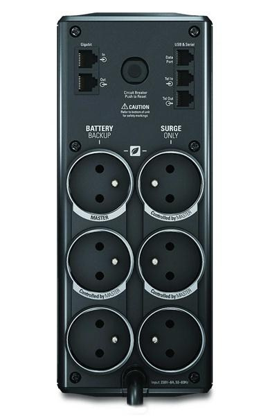 | Typ zásuvek | RJ-11 In/Out RJ45 Base-T Ethernet (1) IEC 320C14 (vstup) (3) French/Belgian (výstup - Záložní provoz na baterie) (3) French/Belgian (výstup - Přepěťová ochrana) pro ochranu laserových tiskáren, scannerů, či jiných zařízení s velkým odběrem |