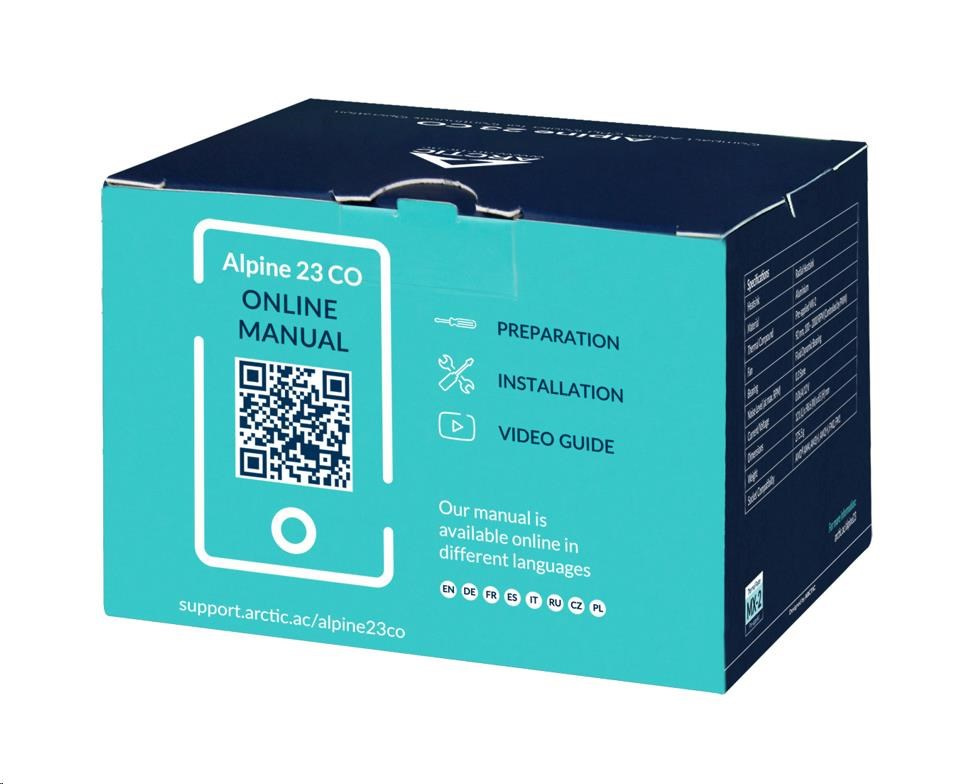 - WIDE RPM RANGE - The Alpine 23 CO features a new motor technology with a very wide, PWM-controlled RPM range. This keeps the noise level at a minimum while guaranteeing maximum cooling performance when needed.