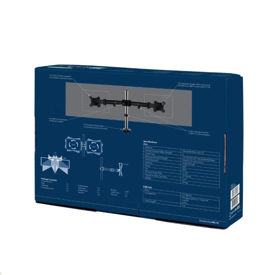 ARCTIC stolní držák Z2 (Gen3) pro 2x LCD do 34", nosnost 2x15kg, 4x USB HUB, černý (black)