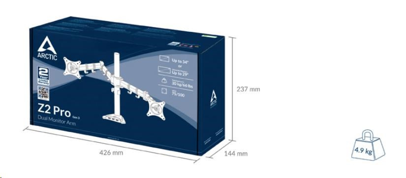 Classic 16:9 monitors are also compatible (up to 34 inches). The Z2 supports a total load of 15 kg/33 lbs.