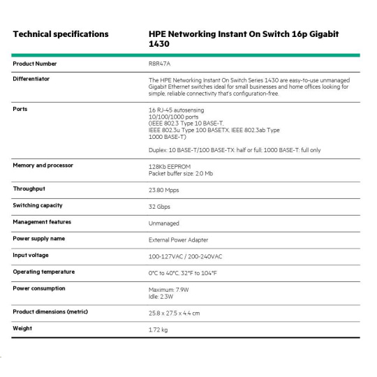 | Aruba Instant On 1430 16G Switch (R8R47A) |