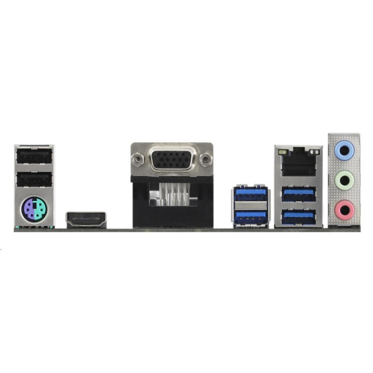 | Rear panel I/O | - 1 x PS/2 Mouse/Keyboard Port - 1 x D-Sub Port - 1 x HDMI Port - 2 x USB 2.0 Ports (Supports ESD Protection) - 4 x USB 3.2 Gen1 Ports (Supports ESD Protection) - 1 x RJ-45 LAN Port with LED (ACT/LINK LED and SPEED LED) - HD Audio Jacks: Line in / Front Speaker / Microphone |