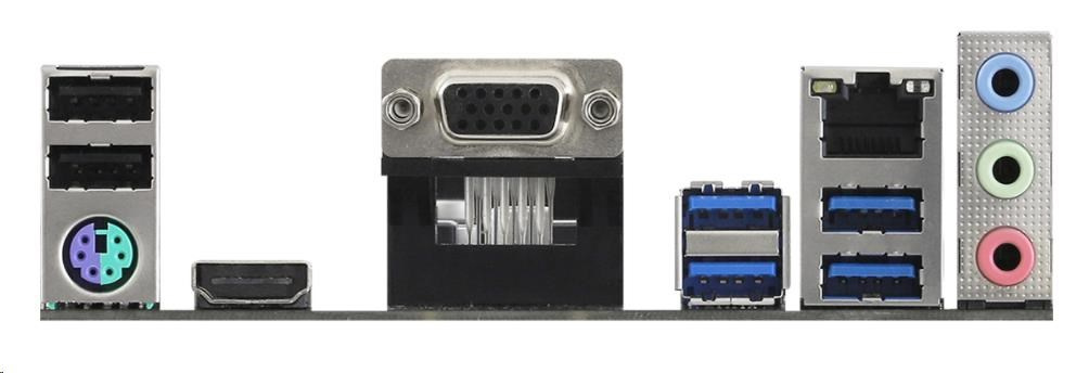 | Rear panel I/O | - 1 x PS/2 Mouse/Keyboard Port - 1 x D-Sub Port - 1 x HDMI Port - 2 x USB 2.0 Ports (Supports ESD Protection) - 4 x USB 3.2 Gen1 Ports (Supports ESD Protection) - 1 x RJ-45 LAN Port with LED (ACT/LINK LED and SPEED LED) - HD Audio Jacks: Line in / Front Speaker / Microphone |