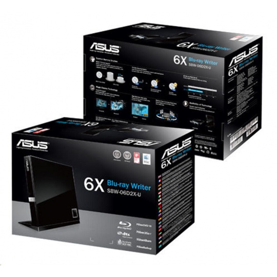 ASUS SBW-06D2X-U - portable 6X Blu-ray slim portable burner with M-DISC support for lifetime data backup and Windows and Mac OS compatibility