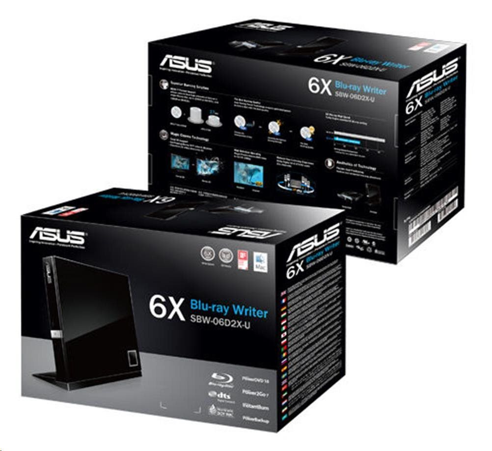 ASUS External Slim BD Writer SBW-06D2X-U BLACK, USB 3.1, Blu-ray