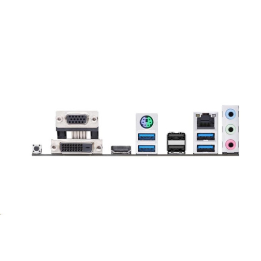 | Back I/O Ports | 1 x PS/2 keyboard/mouse combo port(s) 1 x DVI-D 1 x D-Sub 1 x HDMI 1 x LAN (RJ45) port(s) 4 x USB 3.2 Gen 1 (blue) Type-A 2 x USB 2.0 3 x Audio jack(s) 1 x BIOS FlashBack™ Button(s) |