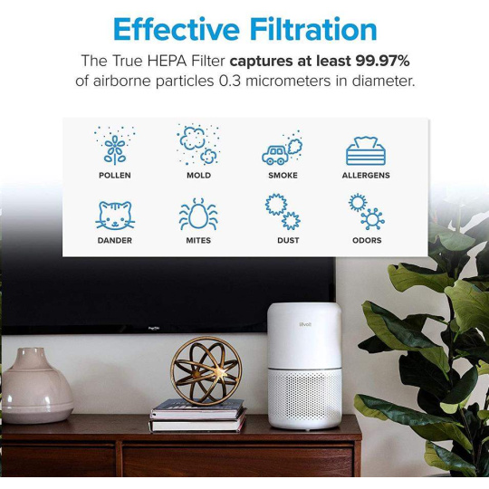 Druhou vrstvou je HEPA filtr H13. To odlišuje Levoit od konkurence, protože filtr HEPA H13 je mnohem kvalitnější a spolehlivější než běžně používané HEPA H11. Tu se odfiltrují jemné prachové částice, plíseň, bakterie, pyl, kouřové částice, roztoče a srst.