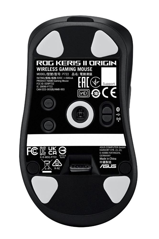 ROG Keris II Origin je 65gramová ergonomická herní myš s tvarem testovaným profesionálními hráči FPS. Myš je vybavena živým třízónovým osvětlením RGB a optickým senzorem ROG AimPoint Pro s rozlišením 42 000 dpi, spínači ROG Micro Switches II a bezdrátovou technologií ROG SpeedNova. Keris II Origin je také kompatibilní s ROG Polling Rate Booster, který podporuje bezdrátovou frekvenci dotazování 8000 Hz.