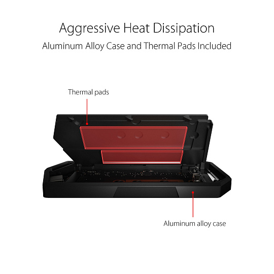 Box pro externí M.2 NVMe SSD disky ROG Strix Arion - USB 3.2 GEN2 Type-C (10 Gb/s), dva kabely USB-C do USB-C a USB-A, instalace bez použití šroubováku, obsahuje chladicí podložky, vhodný pro PCIe 2280/2260/2242/2230 M key/B+M Key