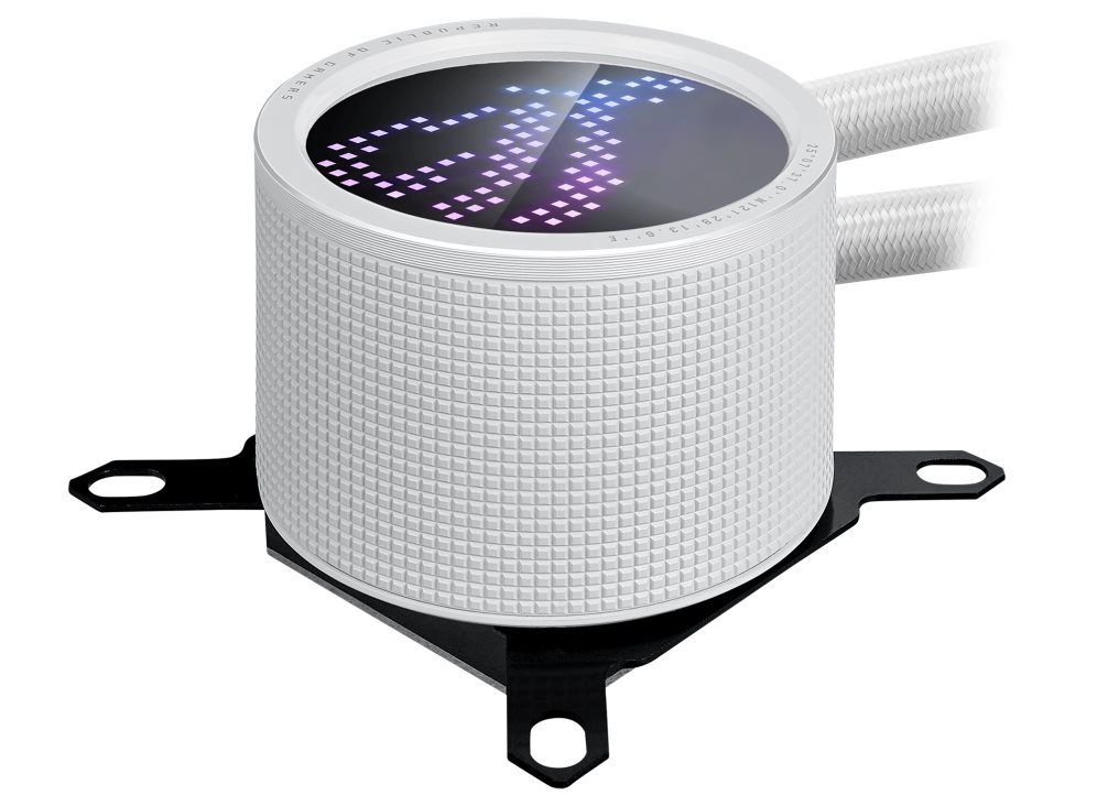 ROG Ryuo III 240 white edition all-in-one liquid CPU cooler with Asetek 8th gen pump solution, Anime Matrix™ LED Display and ROG ARGB cooling fans