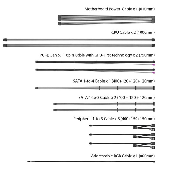 | PCIe 12+4pin Konektor | 2x / 2x (750mm) |