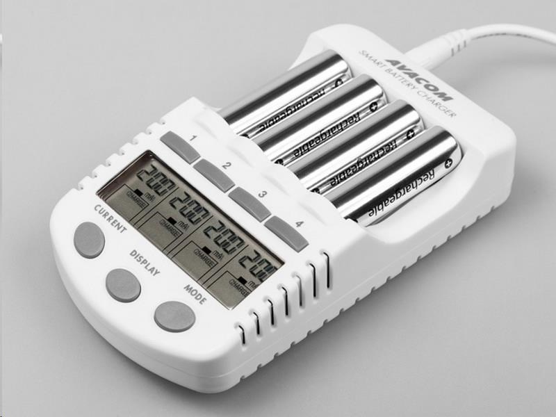 Inteligentní čtyřkanálová nabíječka tužkových AA a mikrotužkových AAA baterií. Nabíjí Ni-MH a Ni-Cd baterie. Nabíjecí proud 200, 500, 700, a 1000mA.