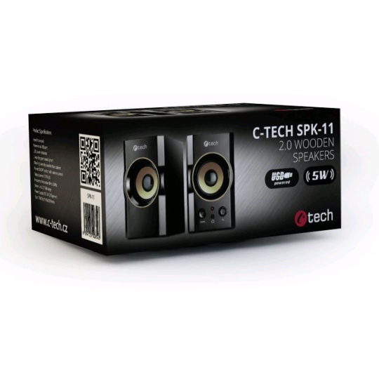 C-TECH repro SPK-11, 2.0, dřevěné, černo-zlaté, USB