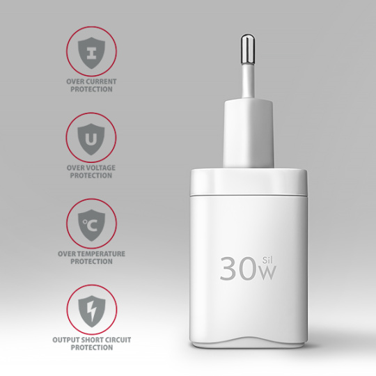 Kompaktní velikost a vysoký výkon je daný použitou novou Sil technologií. Super silicon využívá vyspělé materiály na bázi křemíku. Nabíječka tak může dosáhnout menších rozměrů a současně bezpečného, stabilního a rychlého nabíjení. Účinnost je tak shodná s GaN technologií při zachování příznivé ceny. Nabíječka je vybavena výstupem Power Delivery 3.0 / Quick Charge 4+ USB typu C, což umožňuje rychlé nabíjení smartphonů a tabletů výkonem až 30W.