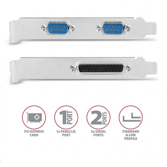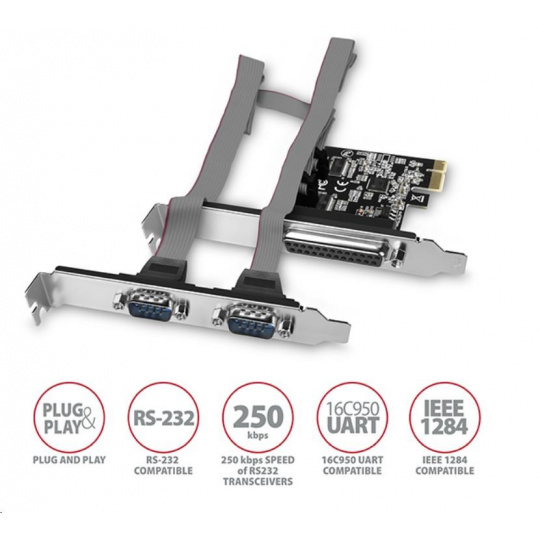 AXAGON PCEA-PSN, PCIe řadič - 1x paralelní (LPT) + 2x sériový port (RS232) 250 kbps, vč. LP