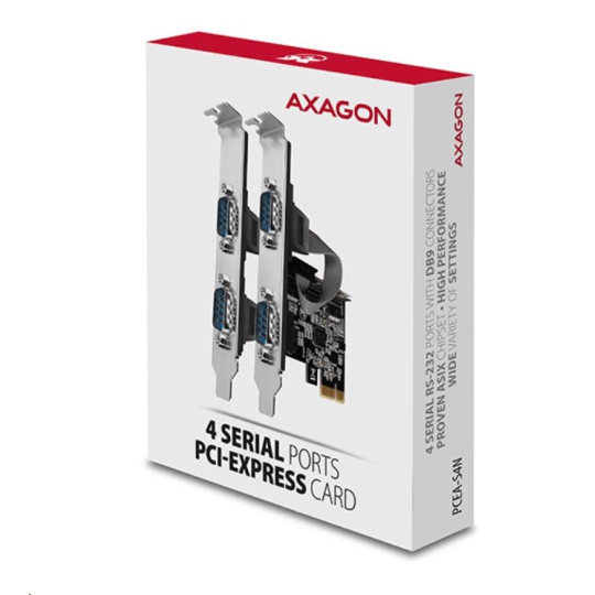 AXAGON PCEA-S4N, PCIe řadič - 4x sériový port (RS232) 250 kbps, vč. LP