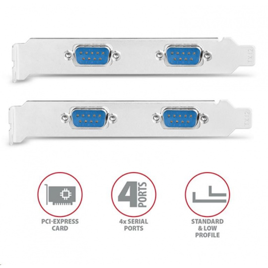 AXAGON PCEA-S4N, PCIe řadič - 4x sériový port (RS232) 250 kbps, vč. LP