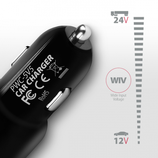 AXAGON PWC-5V5, SMART nabíječka do auta, 2x port 5V-2.4A + 2.4A, 24W