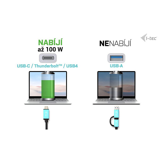 V případě, že je dokovací stanice připojena přes USB 3.0, nabíjení notebooků a tabletů nepodporuje