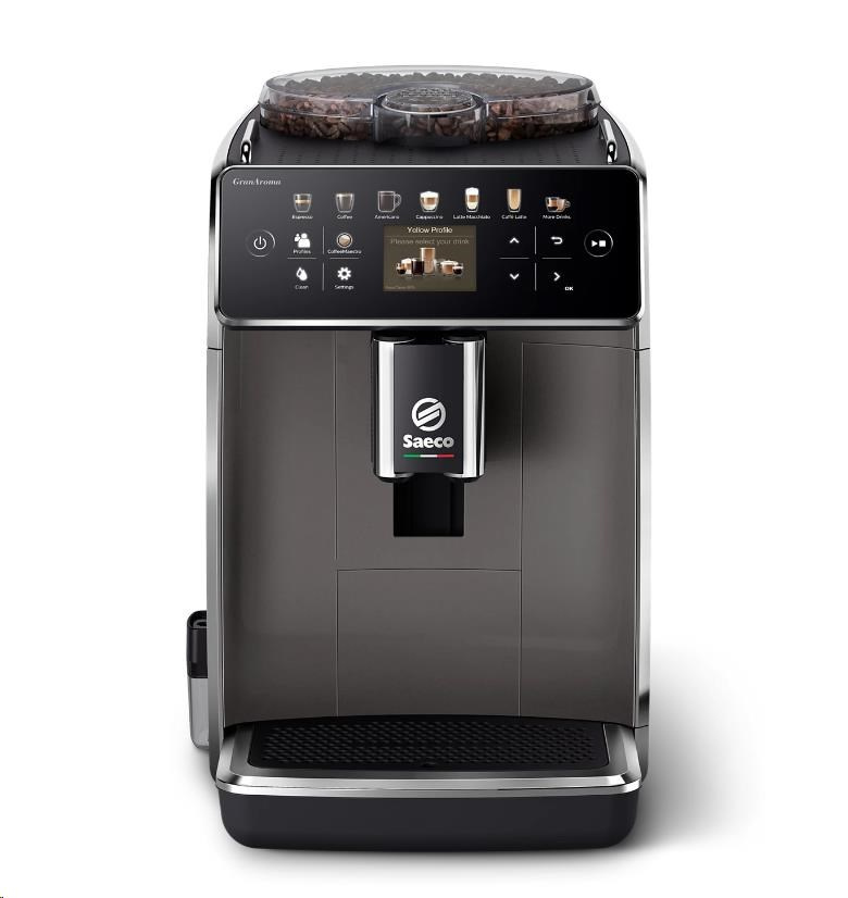 BAZAR Saeco GranAroma SM6582/10 automatický kávovar, 1500 W, vestavěný mlýnek, 15 barů, dotykový displej, 6 profilů