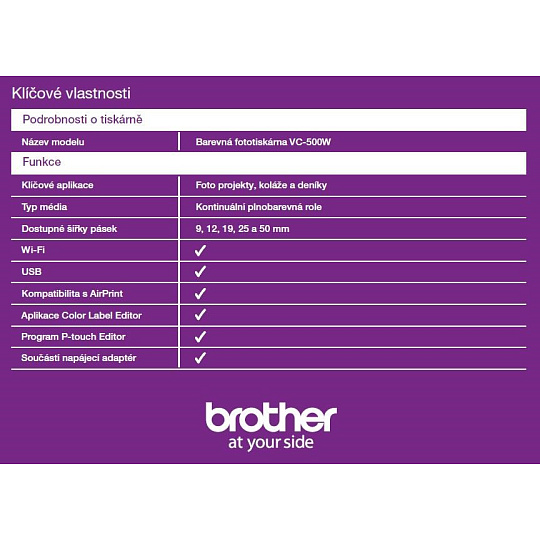 BROTHER tiskárna štítků FOTO - VC500W - WIFI, USB, COLOR bez potřeby inkoustu - Integrovaný odstřih