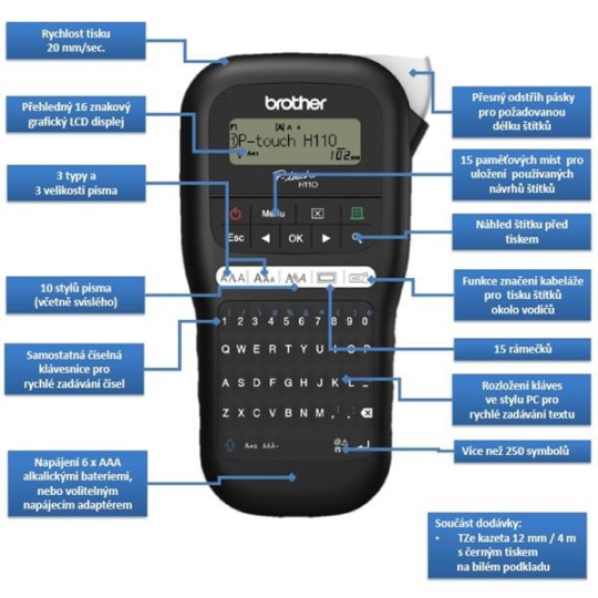 BROTHER tiskárna štítků PT-H110 - 12mm, pásky TZe - popisovač