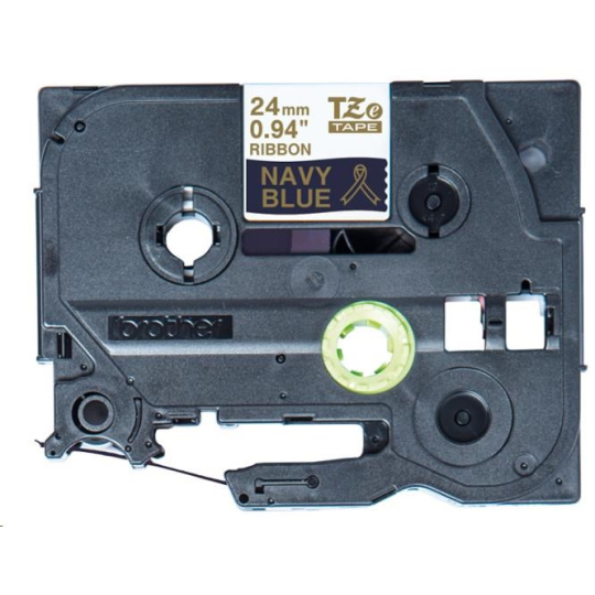 BROTHER TZE-RN54 - kazeta TZ šířky 24mm, TEXTILNÍ páska 4m- pro tvorbu dárků - NELEPÍCÍ - MODRÁ PÁSKA, ZLATÝ POTISK gold
