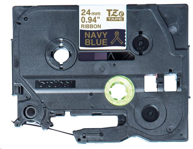BROTHER TZE-RN54 - kazeta TZ šířky 24mm, TEXTILNÍ páska 4m- pro tvorbu dárků - NELEPÍCÍ - MODRÁ PÁSKA, ZLATÝ POTISK gold