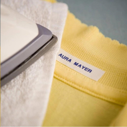 BROTHER TZEFA3 Labelling Supplies, 12mm BLUE ON WHITE FABRIC TAPE.