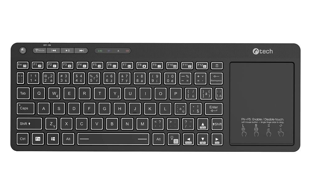 C-TECH Klávesnice WLTK-03, Bezdrátová, Touchpad, černá
