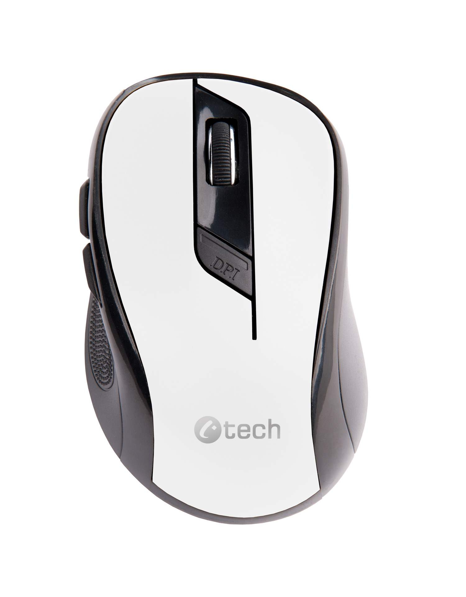 C-TECH myš WLM-02, černo-bílá, bezdrátová, 1600DPI, 6 tlačítek, USB nano receiver