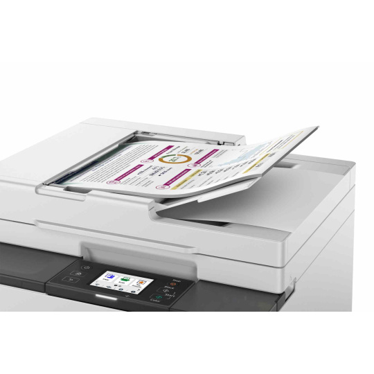 Tiskněte firemní dokumenty vysokou rychlostí 15 obr./min (černobíle) a 10 obr./min (barevně) nebo skenujte přímo do síťových složek nebo e-mailu, a zajistěte si tak nerušenou práci.