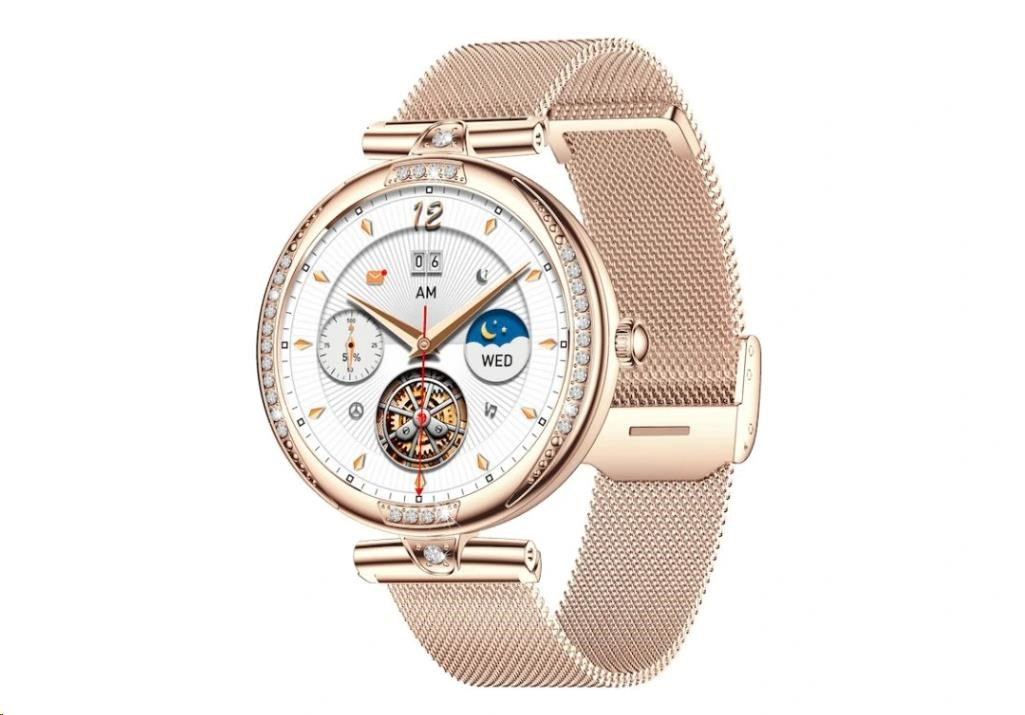 Luxusní dámské fitness hodinky CARNEO Seinna HR+ stříbrné jsou skutečný klenot na ruce každé ženy. Kovové tělo osazené broušenými kameny přitáhne pohledy všech. S barevným SUPER AMOLED displejem monitorují vaši denní aktivitu a lze je spárovat s mobilním telefonem, díky čemuž můžete vyřídit telefonický hovor přímo ze zápěstí, nebo vás upozorní na příchozí hovor, SMS nebo zprávu z aplikací.