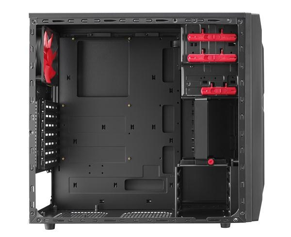 | 1x 120mm fan (at the bottom), 1x 120mm fan (at the front), 1x 120mm fan in VGA card holder, 2x 120mm (left side panel)