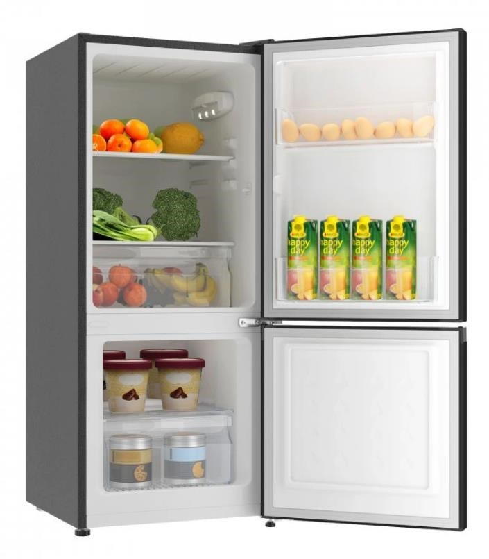Kombinovaná lednice s mrazákem dole o celkovém objemu 117 litrů.