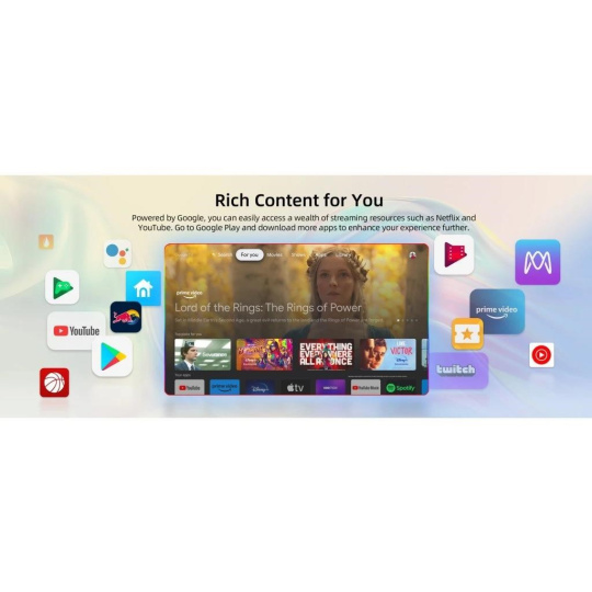 | Aplikace | YouTube, Netflix, Prime Video, Google Play, O2 TV |