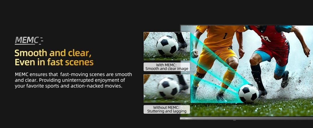 MEMC zajistí, aby rychlé scény byly hladké a plynulé, což oceníte zejména při sledování sportovních utkání (tenis, hokej, fotbal), automobilových závodech nebo akčních filmech.