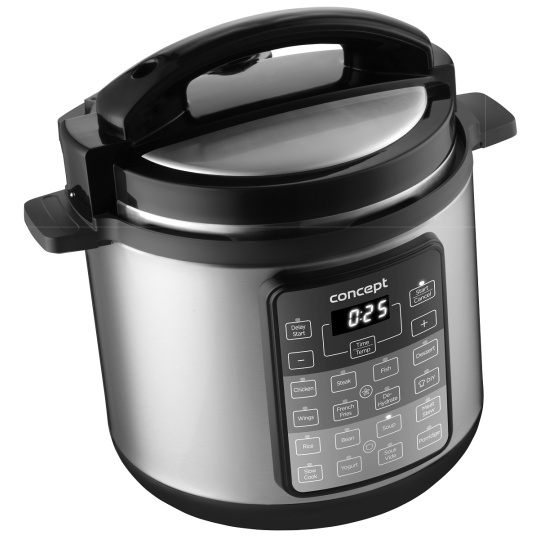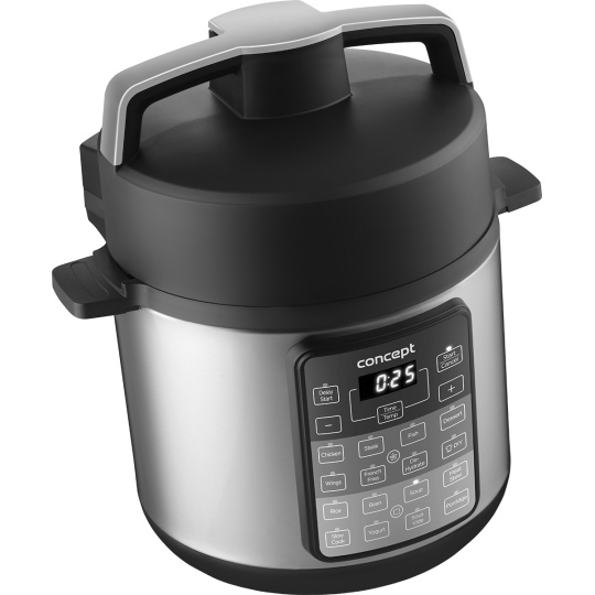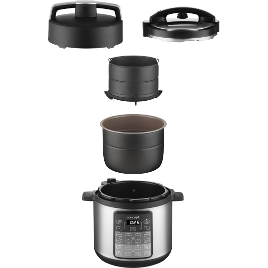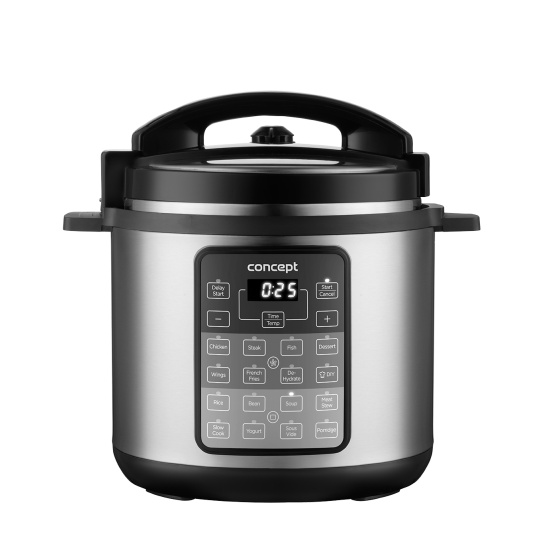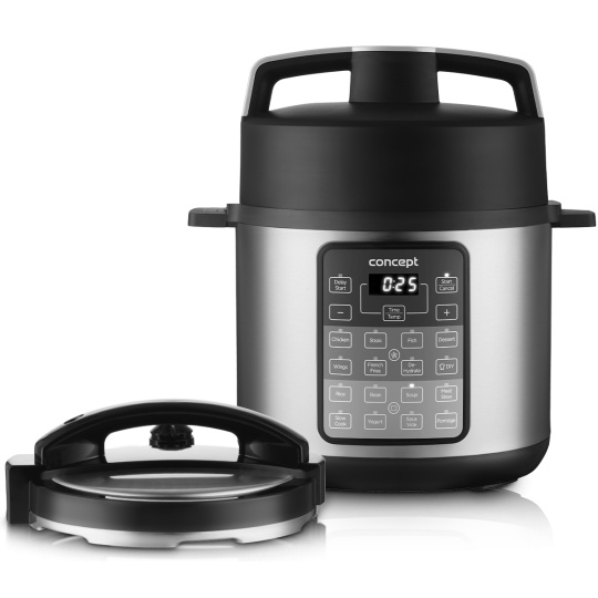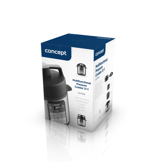 Multifunkční hrnec Concept CK7000 je vybaven dvěma poklicemi, díky kterým poskytuje opravdu široké využití. Zastane práci tlakového hrnce, horkovzdušné fritézy, rýžovaru, pomalého hrnce i jogurtovače. Snadno a rychle připravíte téměř cokoliv, na co si vzpomenete - polévku, hlavní chod i sladký dezert. Vaření v tomto hrnci je navíc velice úsporné, protože pokrm připravíte za zlomek času než v běžném hrnci nebo v troubě. Např. kuřecí stehna upečete s použitím horkovzdušné poklice za méně jak polovinu času a se 70% úsporou energie než v běžné troubě.