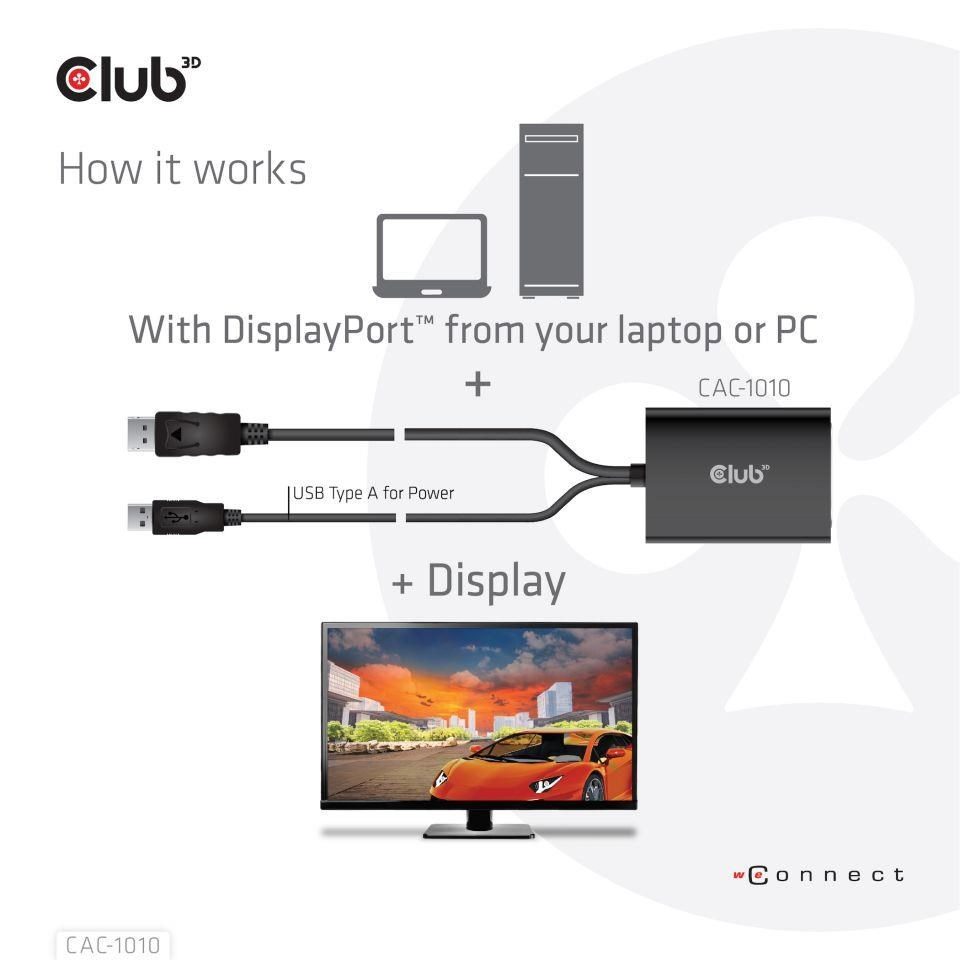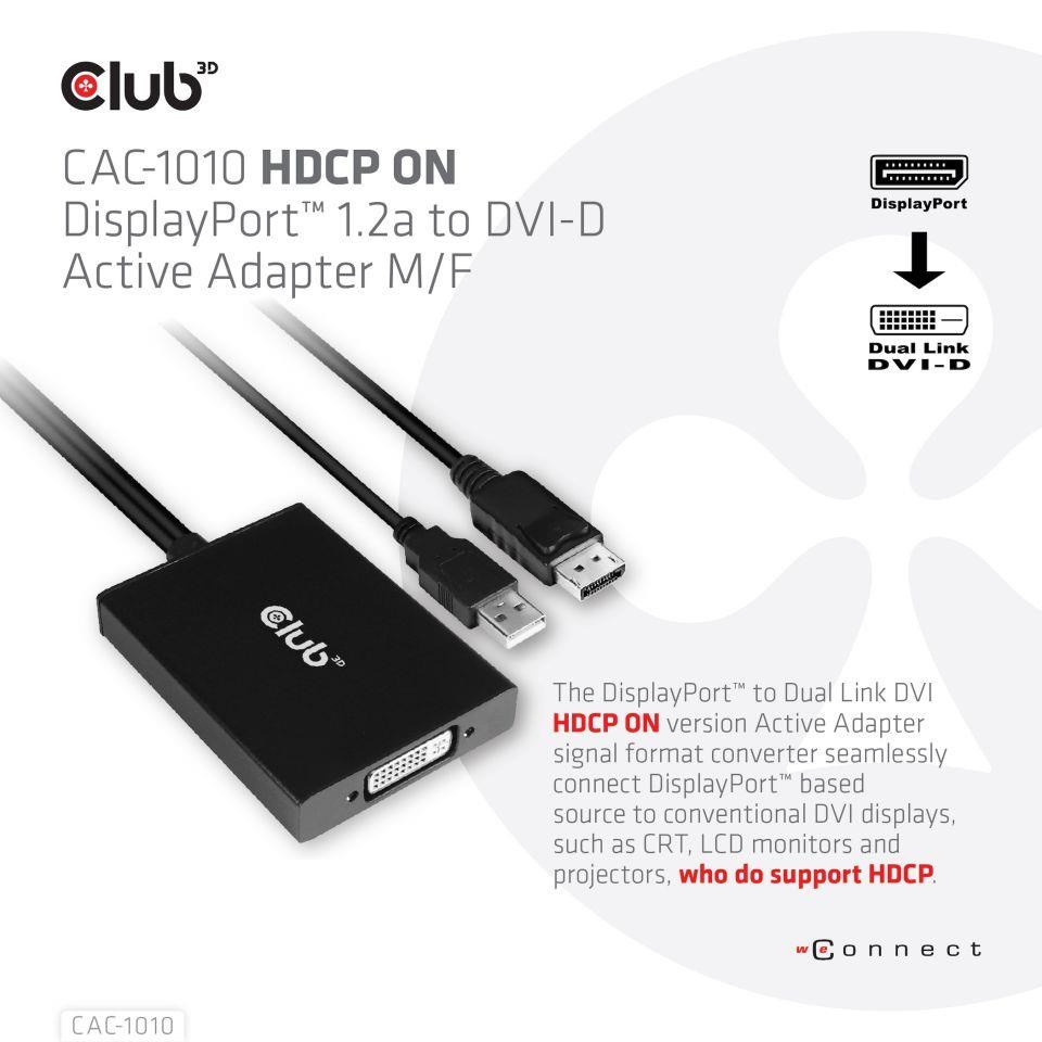Club-3D DISPLAY PORT MALE TO DVI -D ACTIVE DUAL LINK FEMALE 330MHZ STEREO 3D GAMING