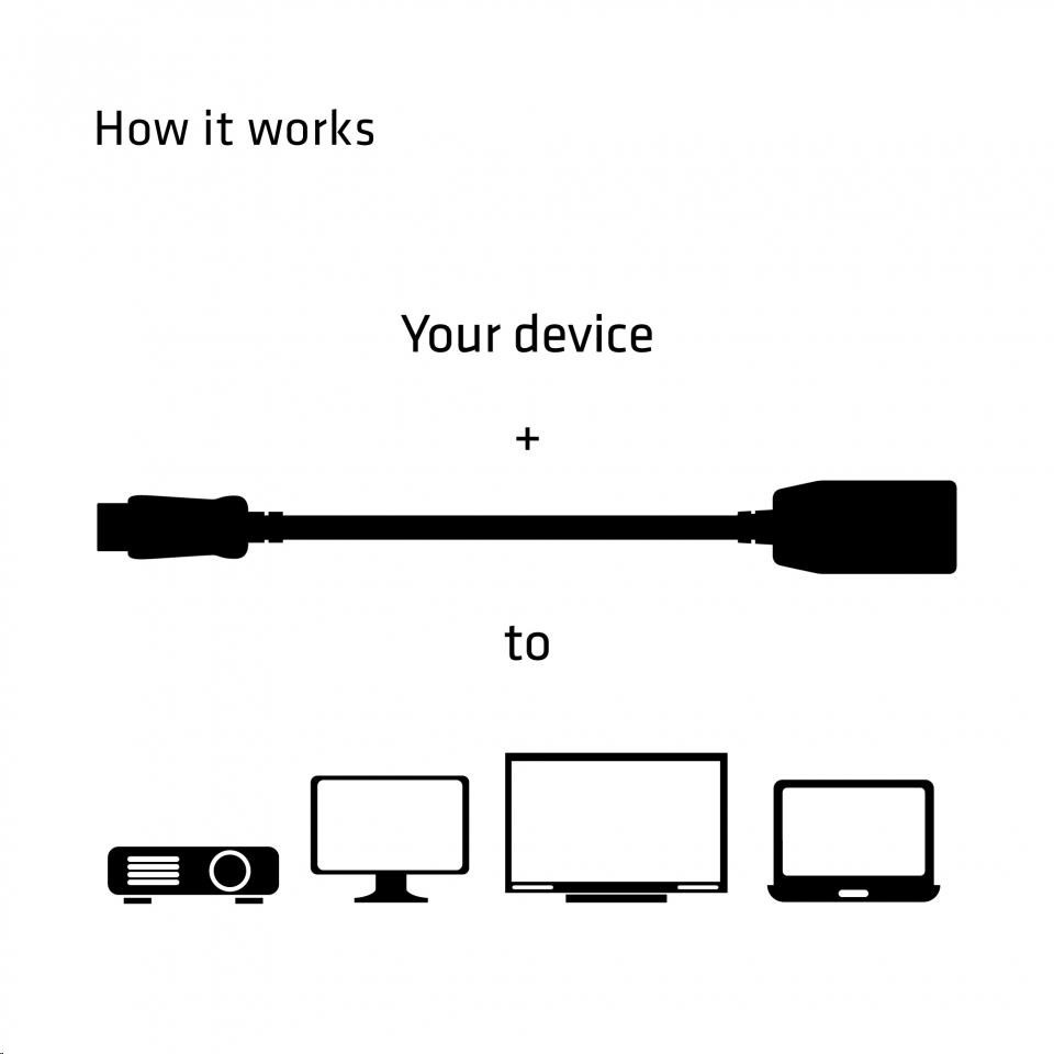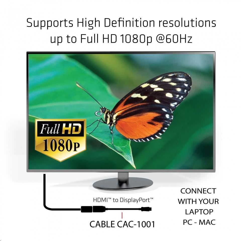 CAC-1001 Club 3D je pasivní převodník signálu HDMI ™. Adaptér DisplayPort ™ na HDMI ™ je nejjednodušší řešení pro připojení vašeho zdrojového zařízení s podporou DisplayPort ™ k televizoru s vysokým rozlišením, monitoru nebo projektoru s podporou HDMI ™.