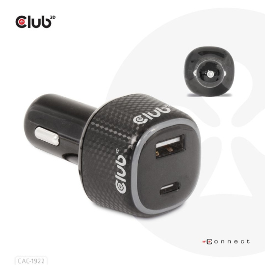 Club 3D CAC-1922 je vysoce výkonný a módní design max. 63W nabíječka do auta s podporou QC3.0 a Power Delivery (PD). S touto nabíječkou můžete nabíjet jakákoli zařízení (např.: digitální fotoaparáty, PDA, notebook, mobilní telefony, USB příslušenství) s vaším autem, když je to potřeba. Je vybaven dvěma USB konektory (jeden konektor USB Type-C a jeden konektor USB Type-A) pro napájení. Tento produkt umožňuje nabíjení dvou zařízení současně a produkt poskytuje maximální výkon 63 wattů. Port USB-C je speciálně navržen pro zařízení s podporou typu C. Pro rozlišení mezi QC a PD nabíjením se LED kontrolka rozsvítí modře pro Quick Charge (QC) nebo červeně pro Power Delivery (PD).